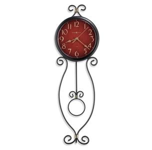 This wrought-iron pendulum wall clock is finished in antique black with antique gold highlights.