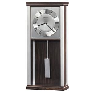 This wall clock features brushed aluminum corners and polished silver-tone accents which complement the ebony finished top and base