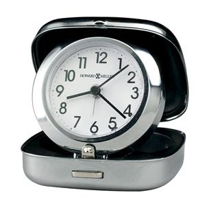 Compact, pop-up travel alarm clock with rounded corners features a spring-loaded hinge which pops the clock open with the push of a button.