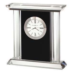 Bold optical crystal, carriage-style clock with black glass center panel.
