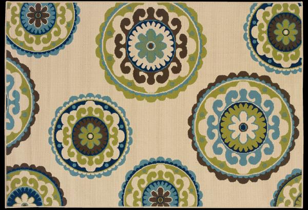 Caspian is a striking new indoor/outdoor collection in trend-forward shades of indigo and Mediterranean blue and bright lime green. Simple, sophisticated patterns come alive with tons of texture and pops of bright color. It is a collection of high-style, high durability rugs that are perfect for the outdoors or for any room in the home. Machine made of 100% polypropylene.