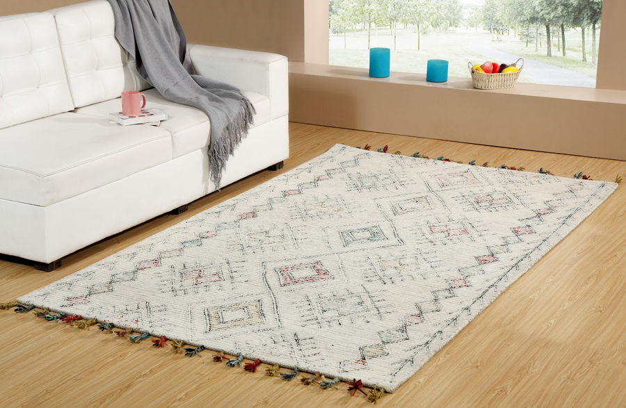 The Casablanca rugs are stunning in both their uniqueness and their quality, both of which are easily apparent upon first glance. The contemporary bohemian-type patterns utilizing modern yarn colors juxtaposed on classic high-quality wool material creates a look that is not only unique, but also versatile in that it can be considered both traditional and trendy. Casablanca rugs are 100% wool and hand tufted in India.
