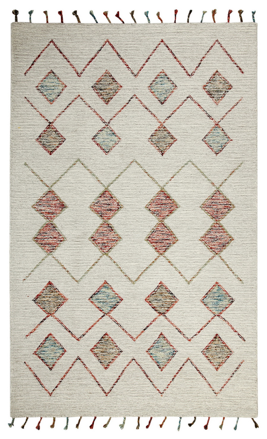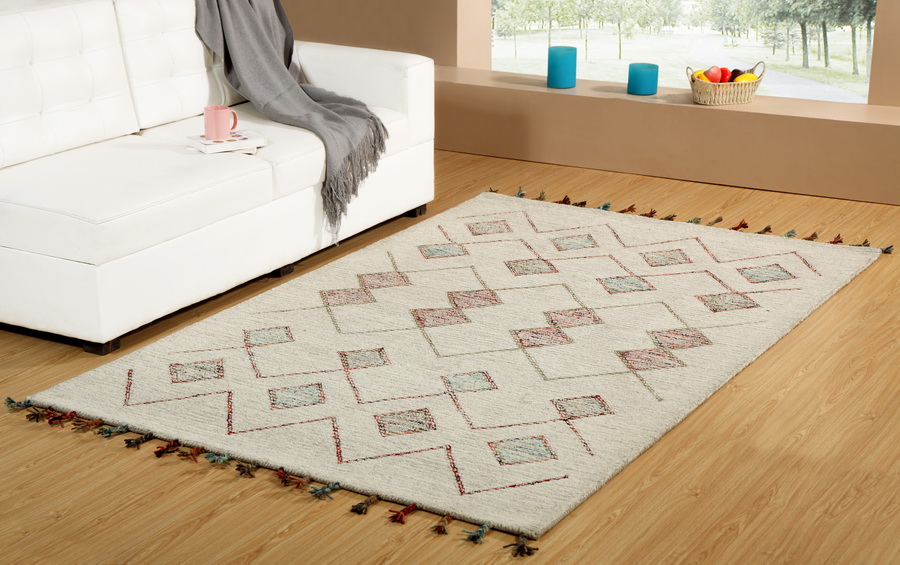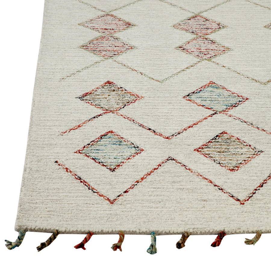 The Casablanca rugs are stunning in both their uniqueness and their quality, both of which are easily apparent upon first glance. The contemporary bohemian-type patterns utilizing modern yarn colors juxtaposed on classic high-quality wool material creates a look that is not only unique, but also versatile in that it can be considered both traditional and trendy. Casablanca rugs are 100% wool and hand tufted in India.