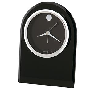 Black, beveled glass arch alarm clock with silver-tone bezel.